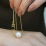 s navlečenou veľkou bielou riečnou perlou .