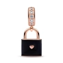 Oslávte svoju večnú lásku s našim visiacim príveskom so zámkom lásky. Tento 14-karátový visiaci zámok pozlátený ružovým zlatom je ručne povrchovo upravený čiernym smaltom, ktorý zvýrazňuje leštené zdvíhané písmo na prednej strane a srdce na zadnej strane. Na navliekacom očku v štýle pavé je reliéfny nápis „Love“ (Láska) s čírymi kubickými zirkónmi zasadenými do písmena „o“. Na spodnej strane visiaceho zámku je vygravírovaný nápis „Precious to me“ (Moja cennosť). Dôležité upozornenie: Visiaci zámok sa nedá otvoriť, čo symbolizuje silné puto lásky. Kolekcia: Moments Materiál: Pozlátenie 14-karátovým ružovým zlatom Doplnkový materiál: Glazúra Farba: bez farby Kameň: Kubický zirkón Téma: Láska PN_782508C01