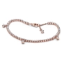 Náramok, Unikátna zmes kovov pozlátená 14k ružovým zlatom, Rozžiarte si sviatočné obdobie. Trblietavý tenisový náramok s visiacimi kamienkami pozlátený 14k ružovým zlatom tvorí rad trblietavých okrúhlych kubických zirkónov s briliantovým výbrusom, ktorý je na retiazke zdobený visiacimi kameňmi, čo z neho robí pozoruhodný kúsok vhodný na akúkoľvek príležitosť. Noste ho samostatne alebo vo vrstvení s náramkami rôznych farieb a kovových odtieňov pre moderný vzhľad. Kolekcia: Timeless Materiál: Pozlátenie 14-karátovým ružovým zlatom Doplnkový materiál: No other material Farba: šedá Kameň: Kubický zirkón Téma: Not Classified PN_582401C01