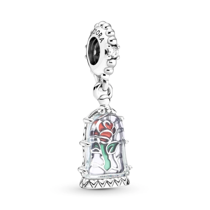 Prívesok,kubický zirkón. Pridajte do svojho vzhľadu štipku kúzla s visiacim príveskom Čarovná ruža z príbehu Kráska a zviera zo série Disney. Má podobu kupoly z priehľadného svetlomodrého muránskeho skla s vygravírovanými hviezdami, v ktorom sa ukrýva filigránska ruža zdobená ručne nanesenou červenou a zelenou glazúrou. Ručne dokončený prívesok zdobia aj číre kubické zirkóny a maličké koráliky na navliekacom očku, pričom spodná časť nesie gravírovanie „Beautiful as a Rose“ (Krásna ako ruža). Je očarujúcou pripomienkou sily lásky. Kolekcia: 15 Materiál: Srebro in 14k pozlata Farba: Purpurová Kameň: Kubický zirkón Téma: Not Classified PN_790024C01