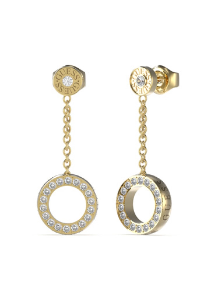 Circle Lights náušnice. Náušnice z nerezové oceli. Visací náušnice s přívěskem. Přívesek se zirkony a gravírovaným logem. Zapínání na motýlí puzetku. Délka náušnic: 4 cm. Průměr přívěsku: 1,5 cm.