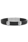 Lion King náramek. Náramek z kůže a nerezové oceli. Přívěšky ve tvaru lví hlavy. Nastavitelné zapínání na magnet. Délka náramku: 20 cm. Rozměr přívěšků: 1,3 cm.