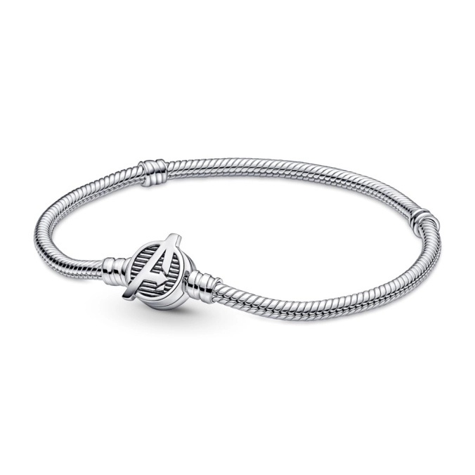 Náramok, šterlingové striebro. Zbierajte svojich hrdinov Marvel a navlečte si ich na náš hadíkový náramok so sponou s logom Avengers z kolekcie Pandora Moments. Tento ručne dokončený náramok na nosenie príveskov zo šterlingového striebra je vybavený ozdobnou sponou, na ktorej je vygravírované ikonické logo Avengers a vyleptané čiarkované detaily. Tento náramok predstavuje dokonalý spôsob, ako sa môžete popýšiť vašimi obľúbenými hrdinami a ukázať svetu svoju lásku k filmovému svetu od Marvelu. Na náramok môžete navliecť až 18 príveskov. Kolekcia: 27 Materiál: Srebro in 14k pozlata Doplnkový materiál: No other material Kameň: Č kameň Téma: Not Classified PN_590784C00