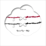 Elegantná sada dvoch Kabbalah náramkov, ktoré spájajú ochranu a symboliku nekonečného putá. Jeden náramok je z červenej šnúrky, tradične symbolizujúci ochranu, vášeň a energiu, druhý z čiernej šnúrky, reprezentujúci stabilitu, silu a pokoj. Oba náramky zdobia rovnaký strieborný prívesok v tvare nekonečna, ktorý pripomína večné spojenie medzi dvoma ľuďmi.