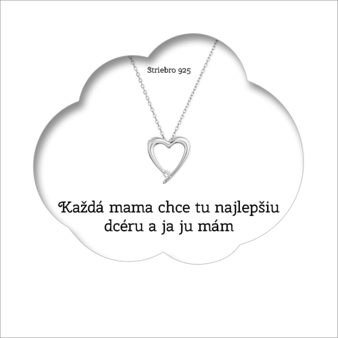 Darčekový set obsahuje strieborný náhrdelník s lesklým srdiečkom ozdobený zirkónom , ktorý je zavesený na darčekovej karte s nádherným prianím „Každá mama chce tú najlepšiu dcéru a ja ju mám“. Materská láska je nekonečná a veľmi krásna. Srdce značí odvahu, statočnosť, ale hlavne vyjadruje lásku k vašej milovanej dcére.