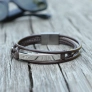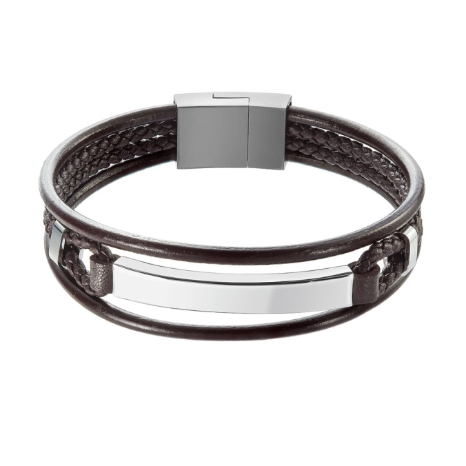Veľmi populárny módny doplnok, vkusne doplní Váš outfit a pritiahne zaslúženú pozornosť. Pánsky náramok je vyrobený z rôzne tvarovaných pásikov z tmavo hnedej recyklovanej kože a koženky ozdobený oceľovým prvkom, ktorá upúta pozornosť okolia.