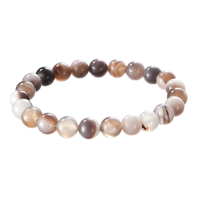 Elegantný náramok z prírodného hnedého achátu zaujme svojou paletou teplých farebných odtieňov – od jemne béžovej cez karamelovú až po sýto čokoládovú. Korálky s priemerom 8 mm majú hladký, lesklý povrch a vytvárajú harmonický celok, ktorý pôsobí prírodne, zemito a pokojne. Každá korálka je originálna svojim sfarbením aj vnútornou kresbou, čo robí z každého náramku jedinečný doplnok s vlastnou energiou.