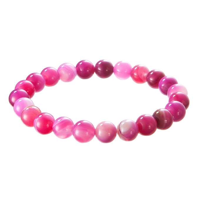 Elegantný náramok z ružového achátu poteší svojou jemnou, harmonickou energiou a krásnymi odtieňmi ružovej farby. Korálky s priemerom 8 mm vynikajú svojou prirodzenou kresbou a pôsobia nežne aj štýlovo – každý náramok je jedinečný originál.