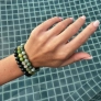 Elegantný náramok z pravého zeleného achátu priťahuje pozornosť svojimi upokojujúcimi tónmi zelenej a jemnou prírodnou kresbou každej korálky. Korálky s priemerom 8 mm majú harmonický vzhľad a dodávajú šperku svieži, pritom zemitý charakter – každý náramok je jedinečný originál.