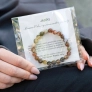 Náramok je navlečený na kartičke s popisom vlastností kameňa a uložený v ochrannom sáčku. Súčasťou je aj darčeková taštička - ideálna ako darček alebo osobný talizman.