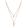 Tento dvojradový ružovo pozlátený strieborný náhrdelníks obdĺžnikom bohato vysadeným zirkónmi a guľôčkou má dĺžku 45 cm a je zdobený mnohými malými zirkónmi v bielej farbe iba na obdĺžniku. Na náhrdelník bolo použité striebro rýdzosti 925/1000. Neobsahuje nikel , a tak ho môžu bez obáv nosiť aj alergici. To všetko je dokonale zabalené v obálke s otvorom v tvare obláčika. Celý set je navyše v priehľadnom sáčku, aby všetko bolo dostatočne chránené.