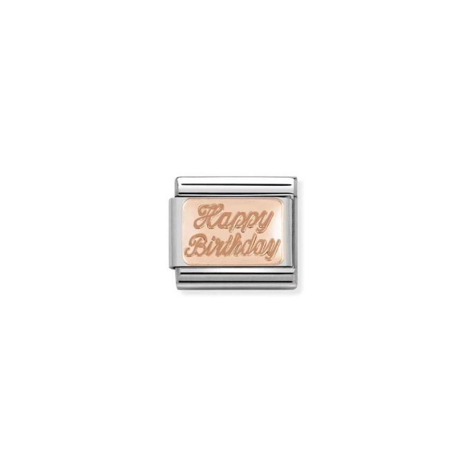 Nomination - šperky vyrobené v Taliansku z oceľe , striebra 925/1000, 9k ružového zlata a 18k zlata. Zdobené zirkónmi, farebnými kameňmi a glazúrou.