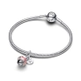 Pandora Otvárateľný kvetinový prívesok zo striebra a pozlátený 14k zlatom s kráľovsky zeleným kryštálom a trblietavou ružovou UV živicou.