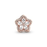 Prívesok, Obyčajný kov (Pandora Rose). Oslávte šťastné sviatky týmto pavé príveskom v tvare trblietavej snehovej vločky. Tento ručne dokončený prívesok vyrobený z Pandora Rose (jedinečná zmes kovov pozlátená 14-karátovým ružovým zlatom) zaujme svojím symetrickým dizajnom inšpirovaným čarom zimy. V strede je vykladaný slzičkovými kameňmi usporiadanými do tvaru snehovej vločky, ktorá je po obvode lemovaná čírymi kubickými zirkónmi. Bočné strany prívesku sú zdobené vyrezávanými srdiečkami. Doplňte tento trblietavý kúsok ďalšími zimou inšpirovanými príveskami a vytvorte tak zo svojho náramku štýlový sezónny doplnok k vášmu looku. Kolekcia: 09 Materiál: Obyčajný kov Doplnkový materiál: No other material Farba: šedá Kameň: Kubický zirkón PN_789224C01