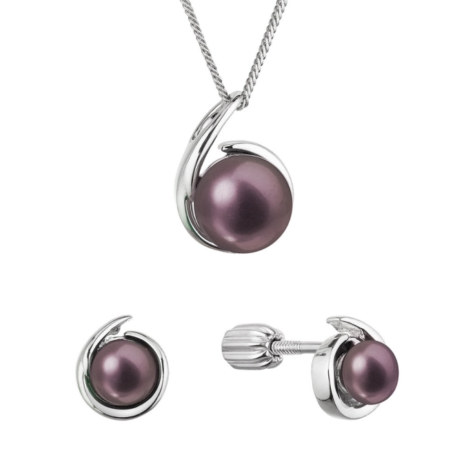 Súprava z tmavých riečnych perál obsahuje slušivé náušnice a prívesok na striebornej retiazke . Peacock sladkovodné perly, ktorými sú šperky zdobené, majú veľmi vysoký lesk, pretože spadajú do kategórie kvality AAA . Farba perál peacock je meniaca sa z tmavo modrého až fialového odtieňa do zeleného až zlatého. Je ťažké túto farbu perličiek presne definovať, preto je nazvaná podľa páva, vždy iná, podľa uhla pohľadu a dopadu svetla .