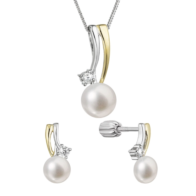 Súprava z riečnych perál obsahuje náušnice a prívesok zavesený na striebornej retiazke . Biele sladkovodné perly s priemerom 6 a 8 mm, ktorými sú šperky zdobené, majú veľmi vysoký lesk, pretože spadajú do kategórie kvality AAA . Šperky sú vyrobené z pozláteného striebra a zo striebra o rýdzosti 925/1000 vrátane povrchovej úpravy ródiom. Súpravu sa nemusia báť zaobstarať ani alergici, pretože šperky neobsahujú žiadny prídavok niklu. Náušnice zapnete na balónik , ktorý ich spoľahlivo ochráni proti nechcenej strate. K súprave je priložený aj certifikát pravosti , ktorý dokazuje pravosť použitých perál.