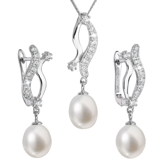 Súprava obsahuje 31 mm dlhé visiace náušnice s bielymi oválnymi perlami a náhrdelník s oválnym perlovým príveskom. Perly, ktorými je súprava zdobená, spadajú do kategórie najvyššej kvality AAA . Luxusné perly dopĺňa striebro rýdzosti 925/1000 a malé blyštivé zirkóny. Náušnice zapnete na ruský patent , ktorý ich ochráni proti nechcenej strate. Šperky zo súpravy 29028.1 neobsahujú nikel, a tak ich môžu bez strachu nosiť aj jedinci náchylní na alergické reakcie.