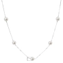 Náhrdelník je vyrobený zo striebra rýdzosti 925/1000 vrátane povchovej úpravy ródiom a po obvode ho zdobí päť riečnych perál bielej farby . Perly spadajú do kategórie kvality AA . Do šperku nie je pridaný žiadny nikel , a tak ho môžu bez obáv nosiť aj alergici.