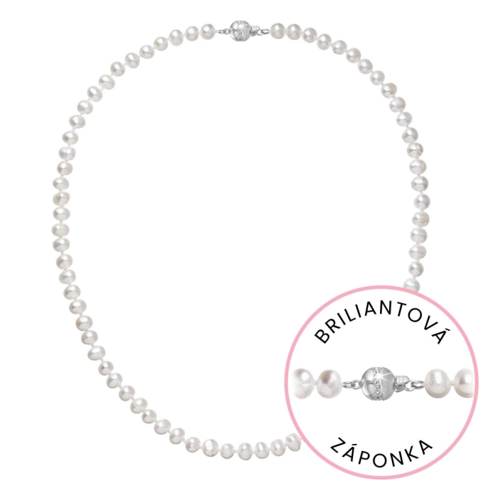 S náhrdelníkom z pravých sladkovodných kultivovaných riečnych perál budete v spoločnosti očarujúce! Jedinečný perlový náhrdelník 822001.1/9266B doplnený o zlaté 14-karátové zapínanie bude vo Vašom dekolte neprehliadnuteľný. Náhrdelník je navlečený z pravých riečnych perál vysokej kvality B a je zaistený uzlíkovou väzbou, ktorá zabraňuje posúvaniu a poškodeniu perál trením o seba a rovnako chráni perly pred rozsypaním, pokiaľ sa náhrdelník náhodou pretrhne. Zapínanie v tvare guličky ozdobené briliantmi o celkovej váhe 0,024 ct. je vyrobené zo zlata rýdzosti 585/1000. Perlový náhrdelník so zlatým zapínaním pre Vás ručne vyrobili naše šikovné šperkárky, ktoré výrobe každého šperku venujú náležitú starostlivosť. O pravosti zlata, riečnych perál a briliantov Vás presvedčí certifikát pravosti, ktorý je ku šperku priložený. Náhrdelník Vám dodáme v originálnej krabičke spolu s darčekovou taštičkou, ktorú od nás obdržíte zadarmo .