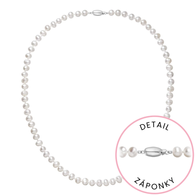 S náhrdelníkom z pravých sladkovodných kultivovaných riečnych perál budete v spoločnosti očarujúce! Jedinečný perlový náhrdelník 822001.1/9271B doplnený o zlaté 14-karátové zapínanie bude vo Vašom dekolte neprehliadnuteľný. Náhrdelník je navlečený z pravých riečnych perál vysokej kvality B a je zaistený uzlíkovou väzbou, ktorá zabraňuje posúvaniu a poškodeniu perál trením o seba a rovnako chráni perly pred rozsypaním, pokiaľ sa náhrdelník náhodou pretrhne. Zapínanie v tvare oválku je vyrobené zo zlata rýdzosti 585/1000 . Perlový náhrdelník so zlatým zapínaním pre Vás ručne vyrobili naše šikovné šperkárky, ktoré výrobe každého šperku venujú náležitú starostlivosť. O pravosti zlata a riečnych perál Vás presvedčí certifikát pravosti, ktorý je ku šperku priložený. Náhrdelník Vám dodáme v originálnej krabičke spolu s darčekovou taštičkou, ktorú od nás obdržíte zadarmo.