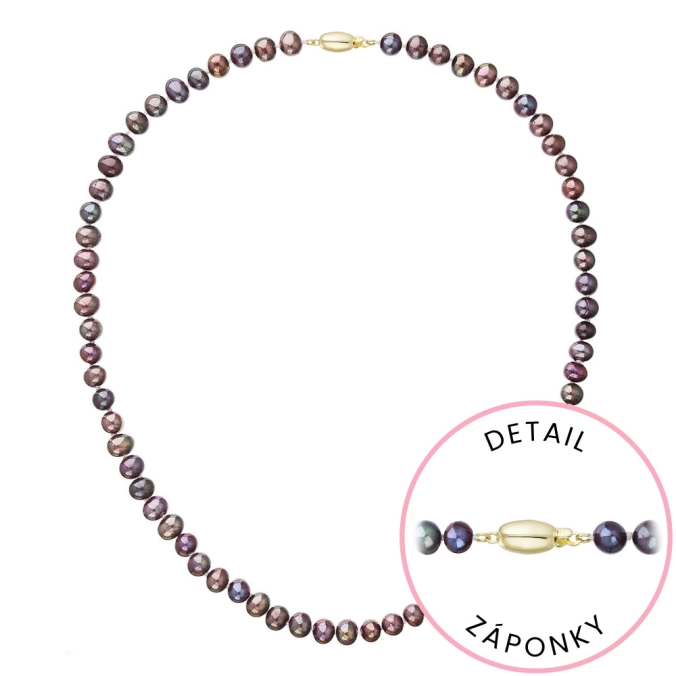 S náhrdelníkom z pravých sladkovodných kultivovaných riečnych perál budete v spoločnosti očarujúce! Jedinečný perlový náhrdelník 922001.3/9271A doplnený o zlaté 14-karátové zapínanie bude vo Vašom dekolte neprehliadnuteľný. Náhrdelník je navlečený z pravých riečnych perál vysokej kvality B a je zaistený uzlíkovou väzbou, ktorá zabraňuje posúvaniu a poškodeniu perál trením o seba a rovnako chráni perly pred rozsypaním, pokiaľ sa náhrdelník náhodou pretrhne. Zapínanie v tvare oválku je vyrobené zo zlata rýdzosti 585/1000. Perlový náhrdelník so zlatým zapínaním pre Vás ručne vyrobili naše šikovné šperkárky, ktoré výrobe každého šperku venujú náležitú starostlivosť. O pravosti zlata a riečnych perál Vás presvedčí certifikát pravosti, ktorý je ku šperku priložený. Náhrdelník Vám dodáme v originálnej krabičke spolu s darčekovou taštičkou, ktorú od nás obdržíte zadarmo.