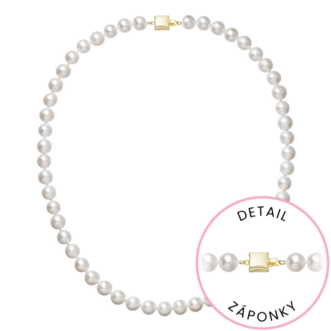 S náhrdelníkom z pravých sladkovodných kultivovaných riečnych perál budete v spoločnosti očarujúce! Jedinečný perlový náhrdelník 922003.1/9268A doplnený o zlaté 14-karátové zapínanie bude vo Vašom dekolte neprehliadnuteľný. Náhrdelník je navlečený z pravých riečnych perál vysokej kvality AA a je zaistený uzlíkovou väzbou, ktorá zabraňuje posúvaniu a poškodeniu perál trením o seba a rovnako chráni perly pred rozsypaním, pokiaľ sa náhrdelník náhodou pretrhne. Zapínanie v tvare štvorca je vyrobené zo zlata rýdzosti 585/1000. Perlový náhrdelník so zlatým zapínaním pre Vás ručne vyrobili naše šikovné šperkárky, ktoré výrobe každého šperku venujú náležitú starostlivosť. O pravosti zlata a riečnych perál Vás presvedčí certifikát pravosti, ktorý je ku šperku priložený. Náhrdelník Vám dodáme v originálnej krabičke spolu s darčekovou taštičkou, ktorú od nás obdržíte zadarmo.