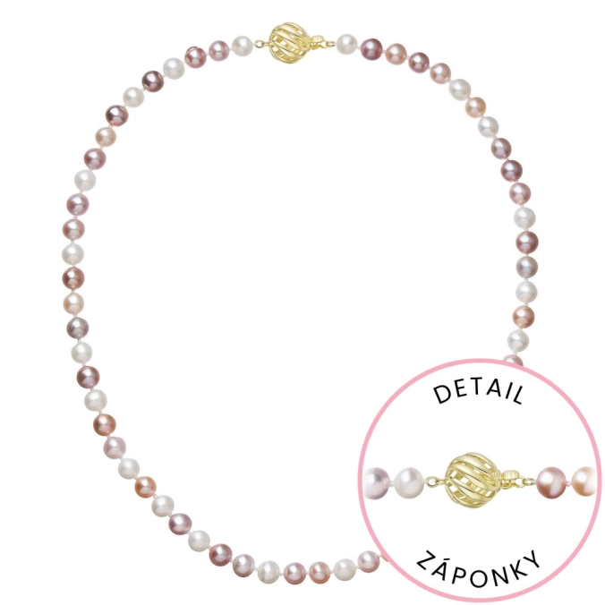 S náhrdelníkom z pravých sladkovodných kultivovaných riečnych perál budete v spoločnosti očarujúce! Jedinečný perlový náhrdelník 922004.3/9272A doplnený o zlaté 14-karátové zapínanie bude vo Vašom dekolte neprehliadnuteľný. Náhrdelník je navlečený z pravých riečnych perál vysokej kvality A a je zaistený uzlíkovou väzbou, ktorá zabraňuje posúvaniu a poškodeniu perál trením o seba a taktiež chráni perly pred rozsypaním, pokiaľ sa náhrdelník náhodou pretrhne. Zapínanie v tvare zdobenej guličky je vyrobené zo zlata rýdzosti 585/1000. Perlový náhrdelník so zlatým zapínaním pre Vás ručne vyrobili naše šikovné šperkárky, ktoré výrobe každého šperku venujú náležitú starostlivosť. O pravosti zlata a riečnych perál Vás presvedčí certifikát pravosti, ktorý je ku šperku priložený. Náhrdelník Vám dodáme v originálnej krabičke spolu s darčekovou taštičkou, ktorú od nás obdržíte zadarmo .