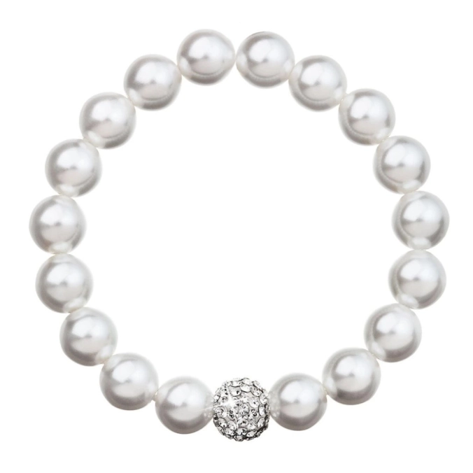 krásne zvýrazní vašu ruku. Náramok 33074.1 je navlečený z bielych okrúhlych perál, medzi ktoré je vložená gulička bohato vysadená Swarovski kryštálmi. Kryštály sú v bielej farbe. Keďže náramok