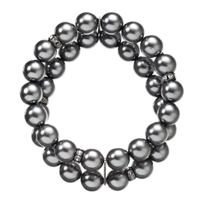 Chystáte sa na ples alebo na inú výnimočnú udalosť? Ozdobte sa elegantným dvojradovým náramkom z tmavo šedých perál! Dvojradový náramok 33065.3 je z tmavo šedých syntetických perál medzi ktoré sú vložené metal rondelky vysadené kryštálmi . Kryštály sú v bielej farbe. Oba náramky sú spojené jemným strieborným komponentom. Dĺžka náramku je 17,5 cm, je pružného materiálu a tak sa prispôsobí veľkosti zápästia. Na rondelky bol použitý bižutérny kov, ktorého povrch prešiel úpravou ródiom. Perlový náramok 33065.3 pre vás ručne vyrobili naše šikovné šperkárky. Náramok vám zadarmo pripravíme do darčekovej krabičky.