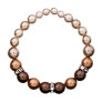 Náramok 33016.3 je navlečený z rôzne veľkých hnedých a bronzových okrúhlych perál, medzi ktoré sú vložené tri okrúhle rondelky vysadené