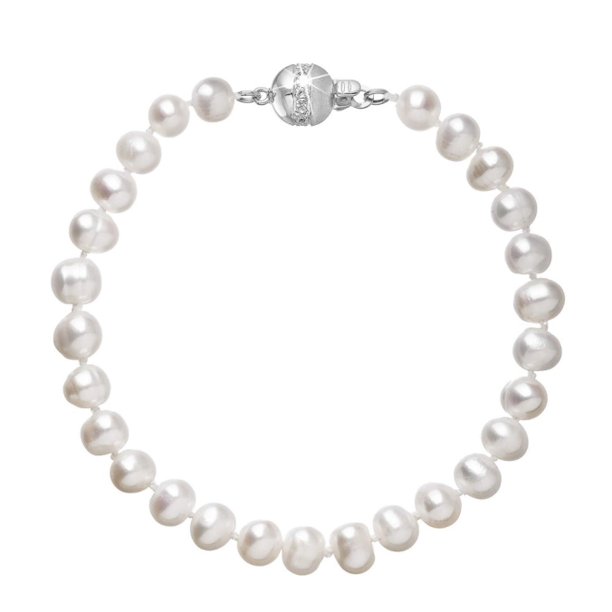 S náramkom z pravých sladkovodných kultivovaných riečnych perál budete v spoločnosti očarujúce! Jedinečný perlový náramok 823001.1/9266B doplnený o zlaté 14-karátové zapínanie bude vo Vašom dekolte neprehliadnuteľný. Náramok je navlečený z pravých riečnych perál vysokej kvality B a je zaistený uzlíkovou väzbou, ktorá zabraňuje posúvaniu a poškodeniu perál trením o seba a rovnako chráni perly pred rozsypaním, pokiaľ sa náramok náhodou pretrhne. Zapínanie v tvare guličky ozdobené briliantmi o celkovej váhe 0,024 ct. je vyrobené zo zlata rýdzosti 585/1000 . Perlový náramok so zlatým zapínaním pre Vás ručne vyrobili naše šikovné šperkárky, ktoré výrobe každého šperku venujú náležitú starostlivosť. O pravosti zlata, riečnych perál a briliantov Vás presvedčí certifikát pravosti, ktorý je ku šperku priložený. Náramok Vám dodáme v originálnej krabičke spolu s darčekovou taštičkou, ktorú od nás obdržíte zadarmo.