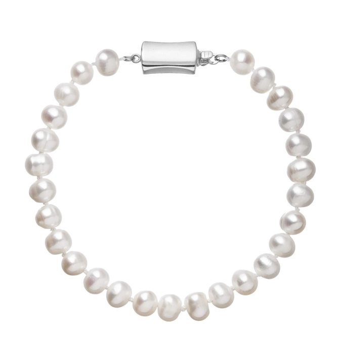 S náramkom z pravých sladkovodných kultivovaných riečnych perál budete v spoločnosti očarujúce! Jedinečný perlový náramok 823001.1/9267B doplnený o zlaté 14-karátové zapínanie bude vo Vašom dekolte neprehliadnuteľný. Náramok je navlečený z pravých riečnych perál vysokej kvality B a je zaistený uzlíkovou väzbou, ktorá zabraňuje posúvaniu a poškodeniu perál trením o seba a rovnako chráni perly pred rozsypaním, pokiaľ sa náramok náhodou pretrhne. Zapínanie v tvare obdĺžnika je vyrobené zo zlata rýdzosti 585/1000. Perlový náramok so zlatým zapínaním pre Vás ručne vyrobili naše šikovné šperkárky, ktoré výrobe každého šperku venujú náležitú starostlivosť. O pravosti zlata a riečnych perál Vás presvedčí certifikát pravosti, ktorý je ku šperku priložený. Náramok Vám dodáme v originálnej krabičke spolu s darčekovou taštičkou, ktorú od nás obdržíte zadarmo.