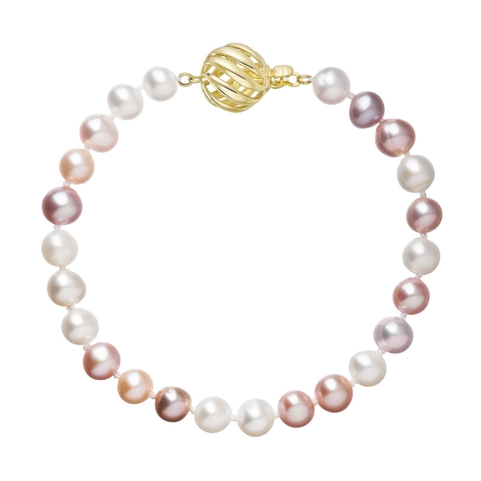 S náramkom z pravých sladkovodných kultivovaných riečnych perál budete v spoločnosti očarujúce!Jedinečný perlový náramok 923004.3/9264A doplnený o zlaté 14-karátové zapínanie bude vo Vašom dekolte neprehliadnuteľný. Náramok je navlečený z pravých riečnych perál vysokej kvality A a je zaistený uzlíkovou väzbou, ktorá zabraňuje posúvaniu a poškodeniu perál trením o seba a rovnako chráni perly pred rozsypaním, pokiaľ sa náramok náhodou pretrhne. Zapínanie v tvare zdobenej guličky je vyrobené zo zlata rýdzosti 585/1000 . Perlový náramok so zlatým zapínaním pre Vás ručne vyrobili naše šikovné šperkárky, ktoré výrobe každého šperku venujú náležitú starostlivosť. O pravosti zlata a riečnych perál Vás presvedčí certifikát pravosti, ktorý je ku šperku priložený. Náramok Vám dodáme v originálnej krabičke spolu s darčekovou taštičkou, ktorú od nás obdržíte zadarmo.