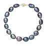 S náramkom z pravých sladkovodných kultivovaných riečnych perál budete v spoločnosti očarujúce! Jedinečný perlový náramok 923011.3/9266A doplnený o zlaté 14-karátové zapínanie bude vo Vašom dekolte neprehliadnuteľný. Náramok je navlečený z pravých riečnych perál vysokej kvality A a je zaistený uzlíkovou väzbou, ktorá zabraňuje posúvaniu a poškodeniu perál trením o seba a rovnako chráni perly pred rozsypaním, pokiaľ sa náramok náhodou pretrhne. Zapínanie v tvare guličky ozdobené briliantmi o celkovej váhe 0,024 ct. je vyrobené zo zlata rýdzosti 585/1000 . Perlový náramok so zlatým zapínaním pre Vás ručne vyrobili naše šikovné šperkárky, ktoré výrobe každého šperku venujú náležitú starostlivosť. O pravosti zlata, riečnych perál a briliantov Vás presvedčí certifikát pravosti, ktorý je ku šperku priložený. Náramok Vám dodáme v originálnej krabičke spolu s darčekovou taštičkou, ktorú od nás obdržíte zadarmo.