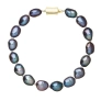S náramkom z pravých sladkovodných kultivovaných riečnych perál budete v spoločnosti očarujúce! Jedinečný perlový náramok 923011.3/9267A doplnený o zlaté 14-karátové zapínanie bude vo Vašom dekolte neprehliadnuteľný. Náramok je navlečený z pravých riečnych perál vysokej kvality A a je zaistený uzlíkovou väzbou, ktorá zabraňuje posúvaniu a poškodeniu perál trením o seba a rovnako chráni perly pred rozsypaním, pokiaľ sa náramok náhodou pretrhne. Zapínanie v tvare obdĺžnika je vyrobené zo zlata rýdzosti 585/1000 . Perlový náramok so zlatým zapínaním pre Vás ručne vyrobili naše šikovné šperkárky, ktoré výrobe každého šperku venujú náležitú starostlivosť. O pravosti zlata a riečnych perál Vás presvedčí certifikát pravosti, ktorý je ku šperku priložený. Náramok Vám dodáme v originálnej krabičke spolu s darčekovou taštičkou, ktorú od nás obdržíte zadarmo.