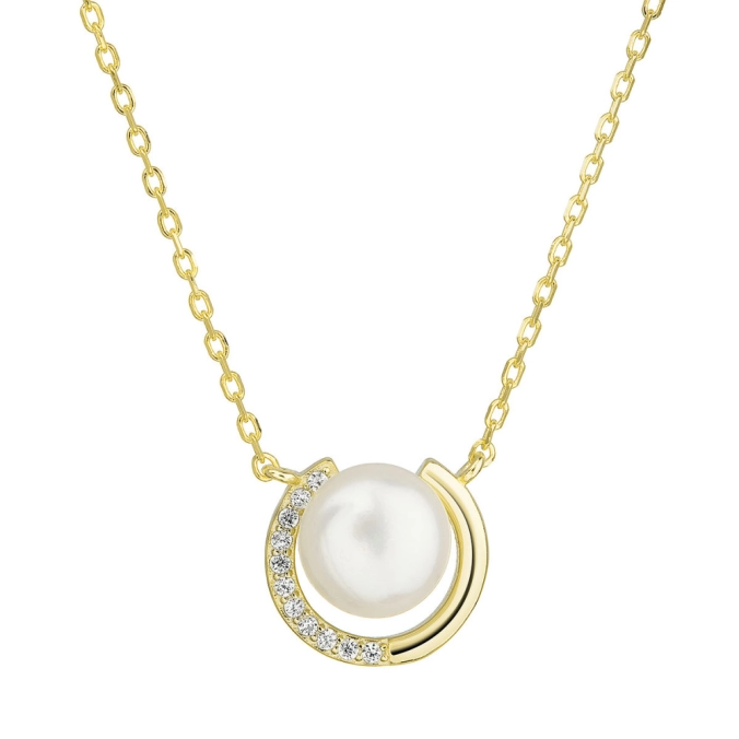 Prívesok je s retiazkou pevne spojený, je v tvare kruhu s bielou perlou uprostred . Pre ešte väčší lesk a eleganciu je kruh doplnený o niekoľko malých trblietavých zirkónov . Pravá riečna perla spadá do kategórie kvality AA , je okrúhleho tvaru a má bielu farbu. Na výrobu náhrdelníka bolo použité pozlátené striebro o rýdzosti 925/1000 . Keďže šperk neobsahuje žiadny prídavok niklu , môžu ho bez obáv nosiť aj alergici.
