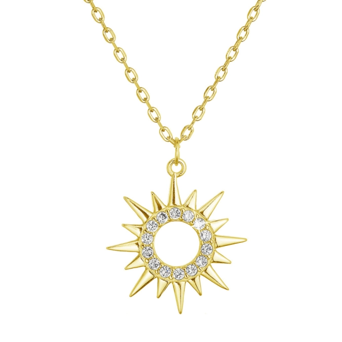 Tento zirkónmi zdobený náhrdelník so symbolom slnka je ideálny pre každú ženu, ktorá miluje preslnené dni a jasnú energiu. Náhrdelník je vyrobený z pozláteného striebra o rýdzosti 925/1000 . Šperk 12115.1 neobsahuje nikel , a tak sa nemusíte obávať alergickej reakcie. Šperk vám dodáme spolu s krabičkou a darčekovou taštičkou.