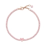 Náramok, unikátna zmes kovov pozlátená 14k ružovým zlatom. Tenisový náramok s trblietavým srdiečkom vnesie do vášho vzhľadu dávku elegancie. Ručne dokončený tenisový náramok z našej jedinečnej zmesi kovov pozlátenej 14-karátovým ružovým zlatom zdobia trblietavé umelé kryštály v orchideovo ružovej farbe. Veľký stredový kameň v tvare srdca nádherne kontrastuje s radom rovnakých kameňov v pavé osadení. Náramok má bezpečné karabínkové zapínanie a má tri nastaviteľné dĺžky. Pre výnimočný klasický vzhľad ho noste spolu s ďalšími trblietavými kúskami kolekcie Pandora Timeless. Kolekcia: Timeless Materiál: Pozlátenie 14-karátovým ružovým zlatom Doplnkový materiál: No other material Farba: šedá Kameň: Krištáľ Téma: Not Classified PN_580041C01